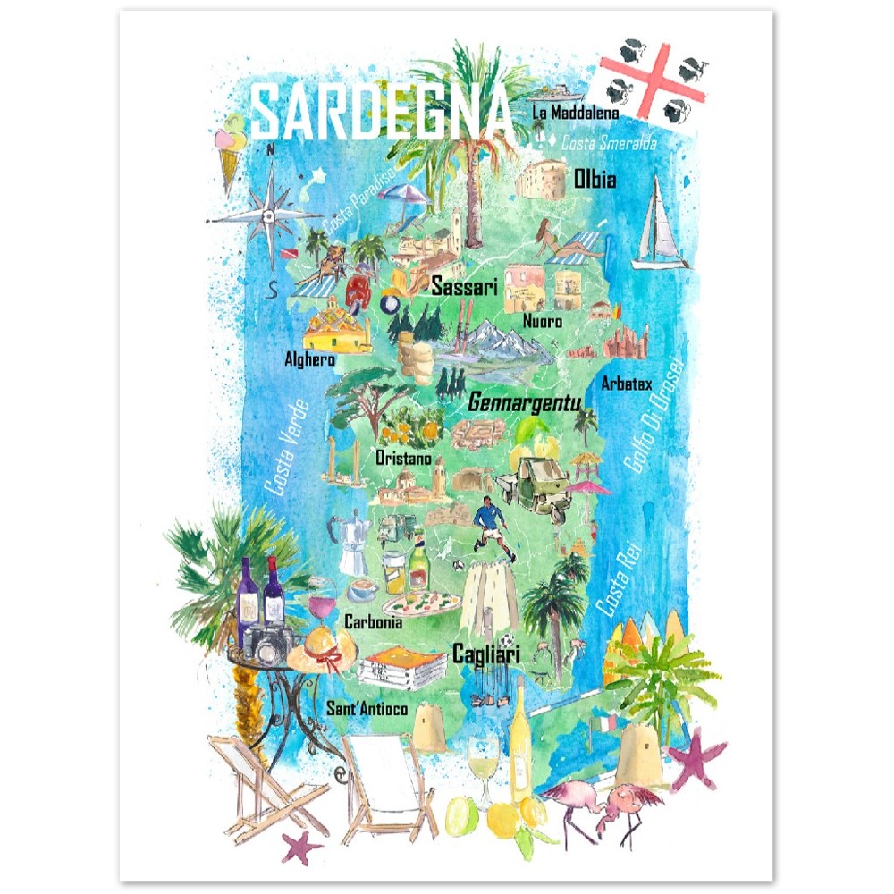 Sardinia Illustrated Travel Map Mediterranean Adriatic Sicily